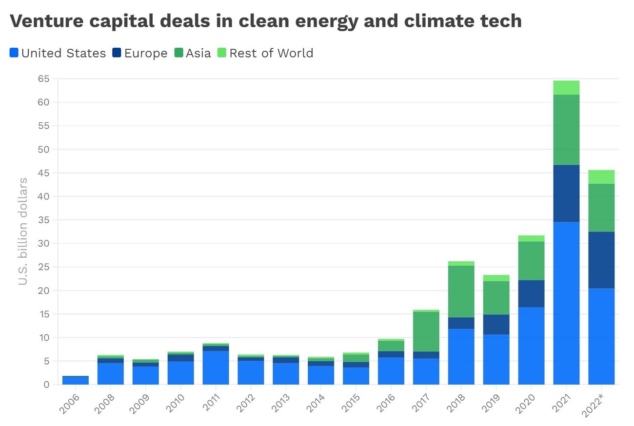 The enactment over the past year of major U.S. climate laws, led by the nearly $400 billion in government incentives in the Inflation Reduction Act, is also boosting climate tech companies.